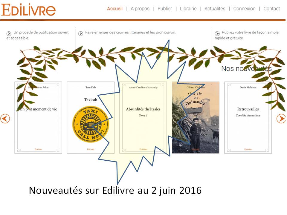 Je continue les publications de mes pièces dans l'édition alternative, véritable outil de l'auteur d'aujourd'hui et que je conseille aux écrivains qui se confrontent aux lois implacables et cruelles de l'édition traditionnelle à cause de laquelle tant de chef-d’œuvres restent inconnus et autant de daubes éditées... ça fait du bien en le disant, même si j'exagère, je le reconnais !